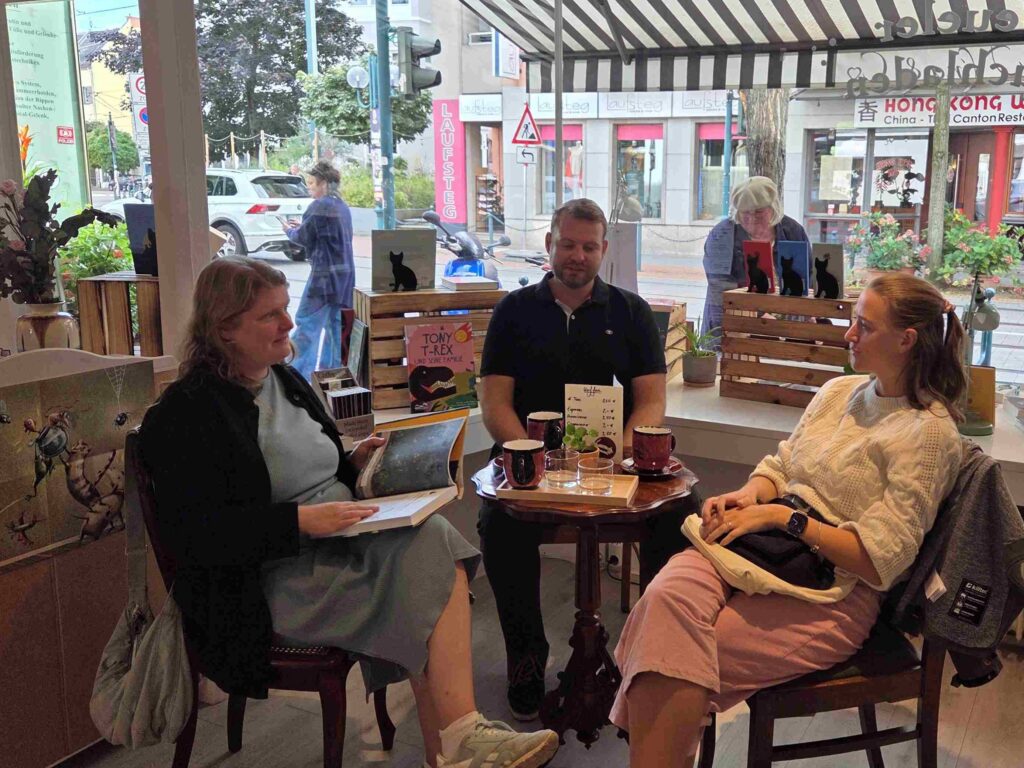 Bei uns kannst Du einen Kaffee oder Tee bestellen, während Du in Ruhe durch das Sortiment stöberst.