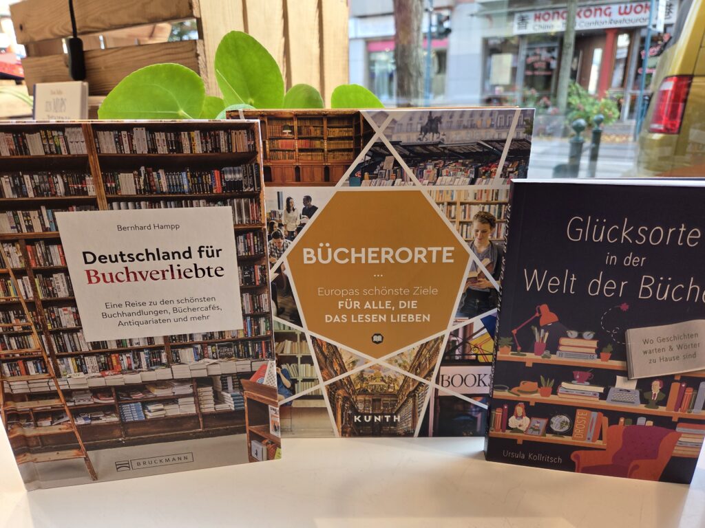 22.10.2025 | „Do you Read Me“, ein Buch über die ausgefallenen Buchhandlungen weltweit, habe ich nach dem Tipp einer Kundin seit einigen Wochen zur Ansicht an den Kaffeetischen liegen. Nach einem Gespräch über das Buch schickte mit eine Kundin weitere Hinweise zu Büchern über Bücherorte. Nun stehen sie alle versammelt bei uns im Schaufenster.