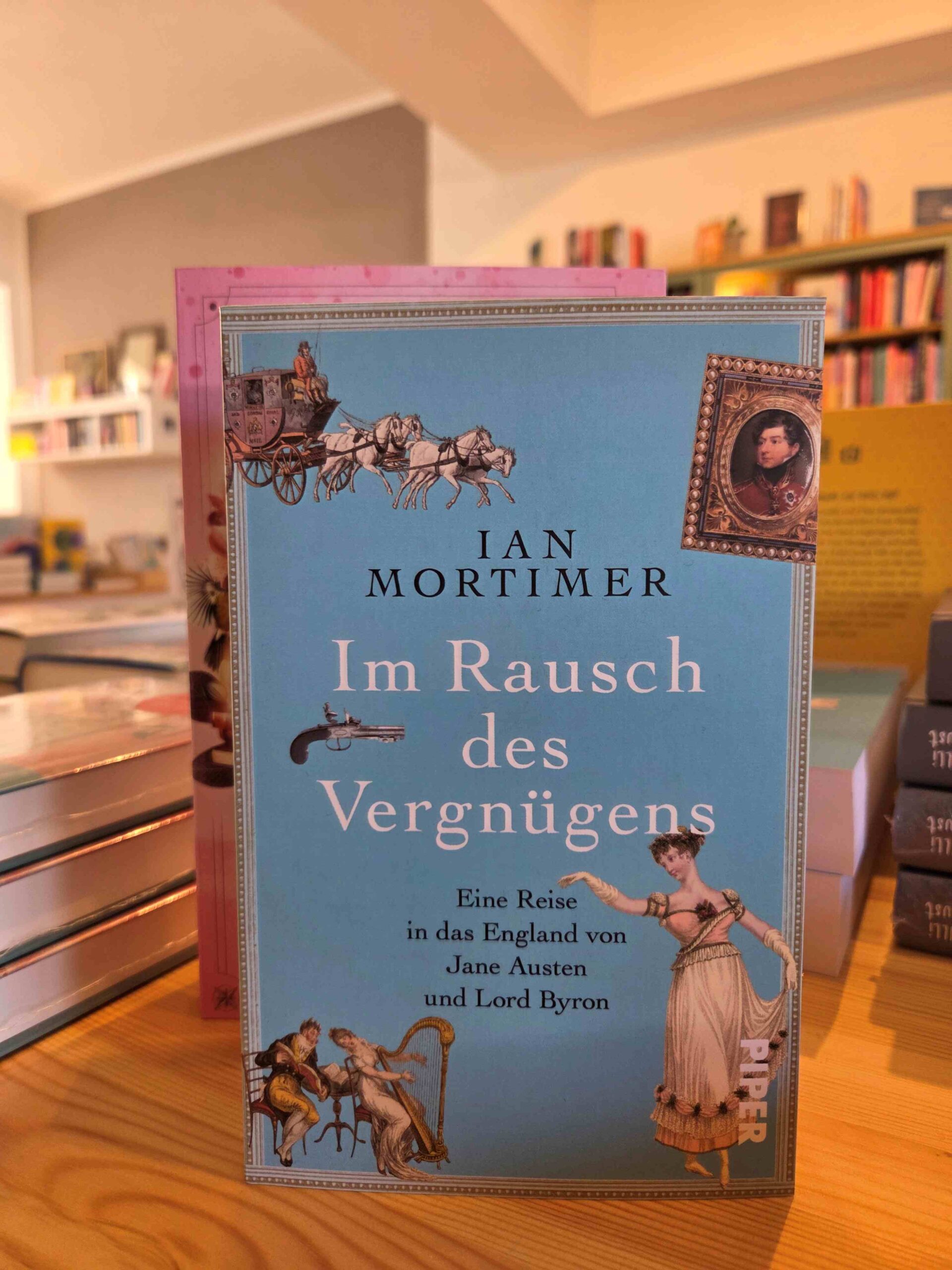 In Im Rausch des Vergnügens – Eine Reise in das England von Jane Austen und Lord Byron nimmt Ian Mortimer uns mit auf auf eine Reise rund um die Zeit des Regency. Dabei listet er akribisch Fakten und Zahlen zu den Lebensverhältnissen der Zeitgenoss*innen von Jane Austen und Lord Byronauf. Wir erfahren, wie sich die Gesundheitsversorgung, der Straßenbau oder die Einstellung zur Sklaverei in dieser Zeit entwickelt haben. Welche Möglichkeiten und Rechte Frauen und Homosexuelle hatten.