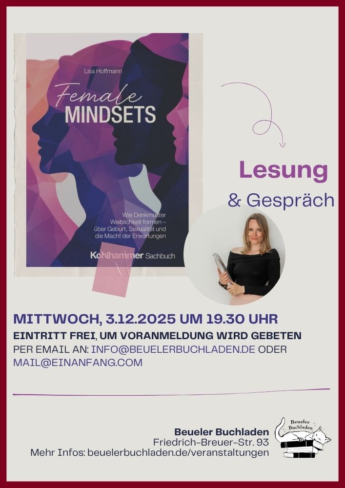 Die Autorin Lisa Hoffmann stellt ihr Buch female mindsets vor. Dabei liest sie Passagen aus dem Buch vor und steigt im Gespräch tiefer in die Themen ein.